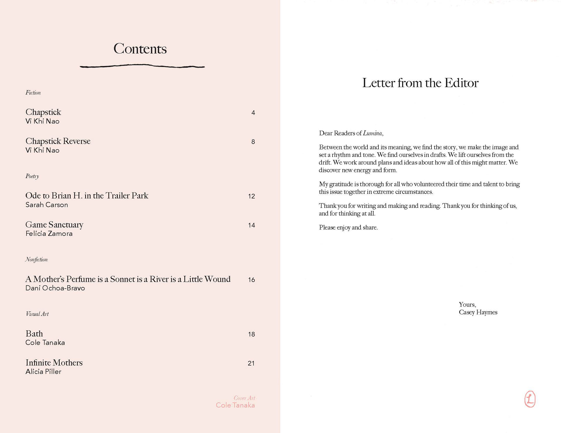 Rebrand and illustration for Lumina, the annual online and print publication of the Sarah Lawrence College. Project Roles: Designer, Illustrator Client: Sarah Laurence College